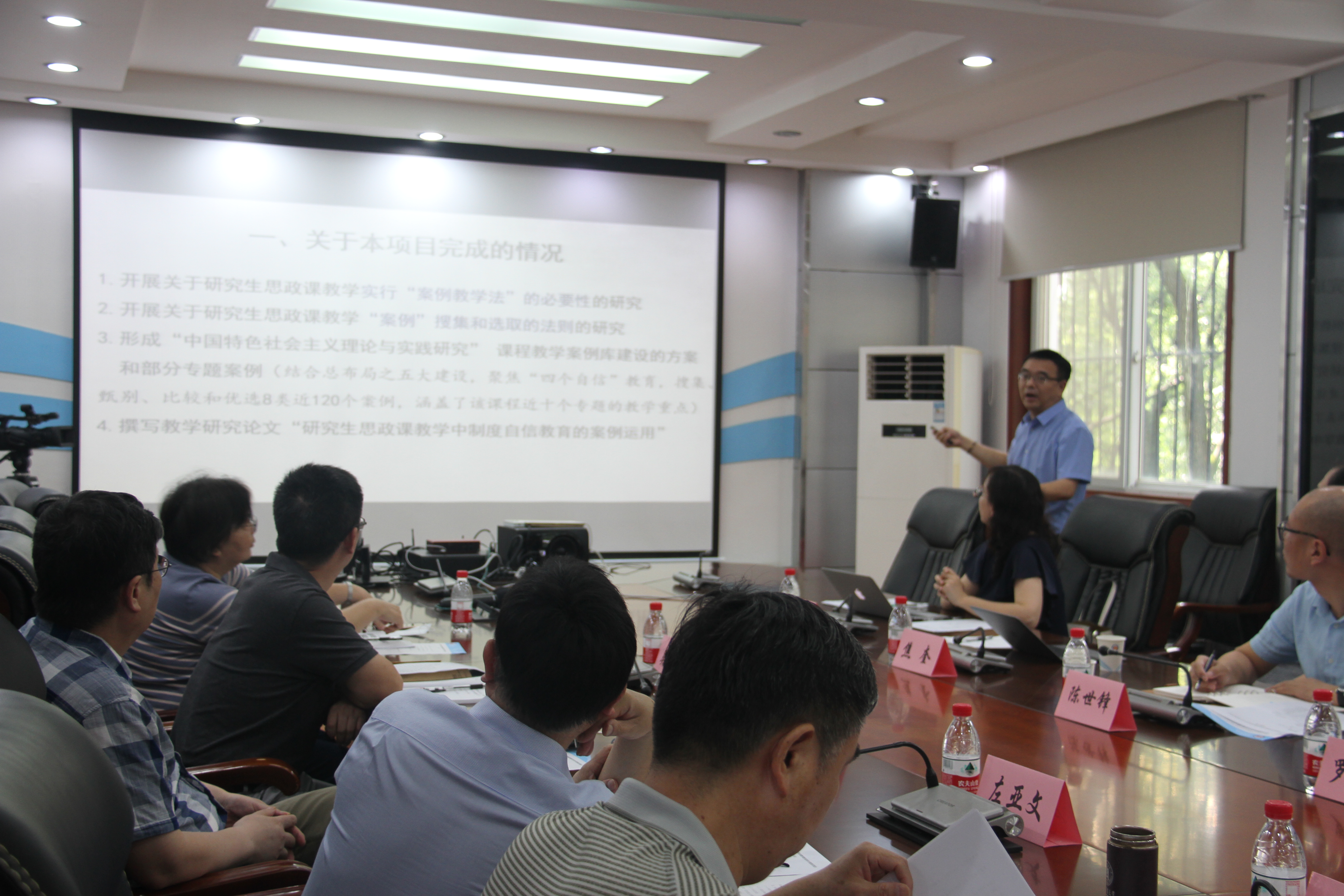 李勤教授、吴向伟副教授、万军杰副教授、俞文冉副教授、焦奎副教授、杨虹副教授、陈慧女副教授、李向勇副教授先后围绕“以问题为导向的研究生政治理论课教学模式研究”、“中国特色社会主义理论与实践研究”教学中运用比较法研究、“中国特色社会主义理论与实践研究”Seminar教学模式探讨、“运用VR技术的思政慕课虚拟实践教学研究”、“中国特色社会主义理论与实践研究”课程考试考核制度与方法研究、“中国特色社会主义理论与实践研究”实践教学研究、“中国特色社会主义理论与实践研究”课程教学资源建设与整合、“中国特色社会主义理论与实践研究”课程专题式教学研究等主题,先后开展了详细汇报和深入交流。