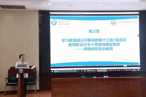 随后,孙燕对全院教职工开展师德师风警示教育,组织全体教师学习教育部公开曝光的第十三批7起违反教师职业行为十项准则的典型案例,要求各位教师严格遵守师德师风,争做“四有”好老师。