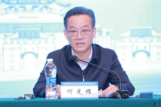 何光耀在致辞中从马克思主义的立场观点方法、中华优秀传统文化的思想智慧、中国共产党百年奋斗的历史经验以及全球治理体系的优化路径等四个方面阐释了人类命运共同体理念对中国和世界的重要意义;总结了十年来构建人类命运共同体从理念到行动,从萌发到壮大,从双边到多边,取得的举世瞩目的实践成果;提出立足新时代新征程,要全面把握人类命运共同体理念的丰富理论与实践成就,在理论解读中与中国式现代化紧密结合,不断推动人类命运共同体理念的研究和传播再上新台阶。