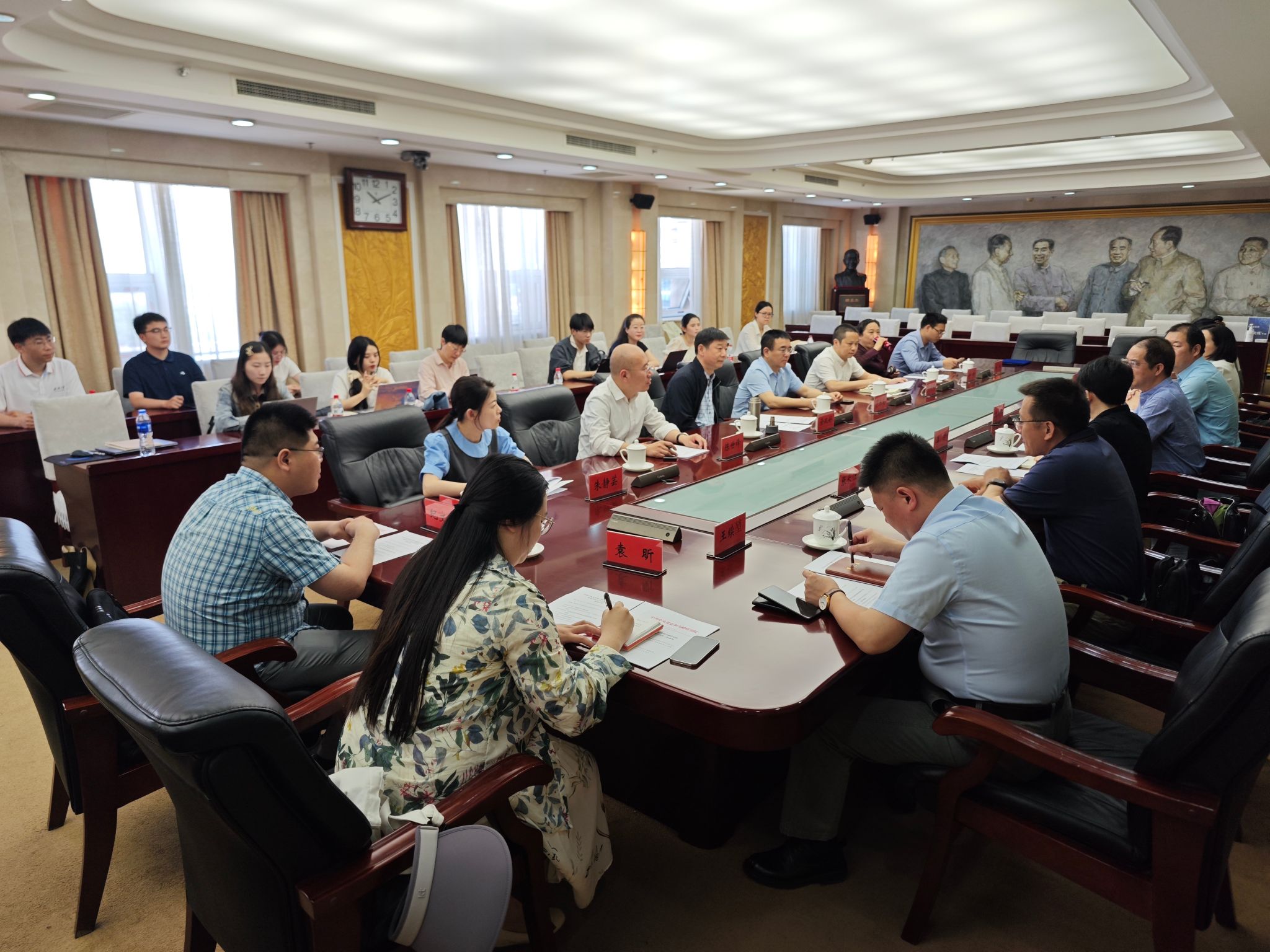 海外当代中国研究基地三年来的工作情况进行了总结汇报。他指出,基地自2021年10月建立以来,以海外涉党舆情研判为主业,以讲好当代中国故事、讲好习近平新时代中国特色社会主义思想、讲好中国共产党和党的领袖为主责,在六大方面取得了明显双赢的合作实效。包括:加强舆情信息共享,聚焦海外当代中国课题研究;搭建学术交流平台,推出高水平学术研讨会;加强人才培养交流,构筑联合培养模式;推出学术研究成果,扩大学术影响;开展对口帮扶助,发挥基地辐射作用;组建跨学科多语种专家团队,健全工作机制。他表示,今后基地将进一步聚焦主业,优化机制,形成品牌,深化合作,在基地建设中发挥“一马当先”作用。