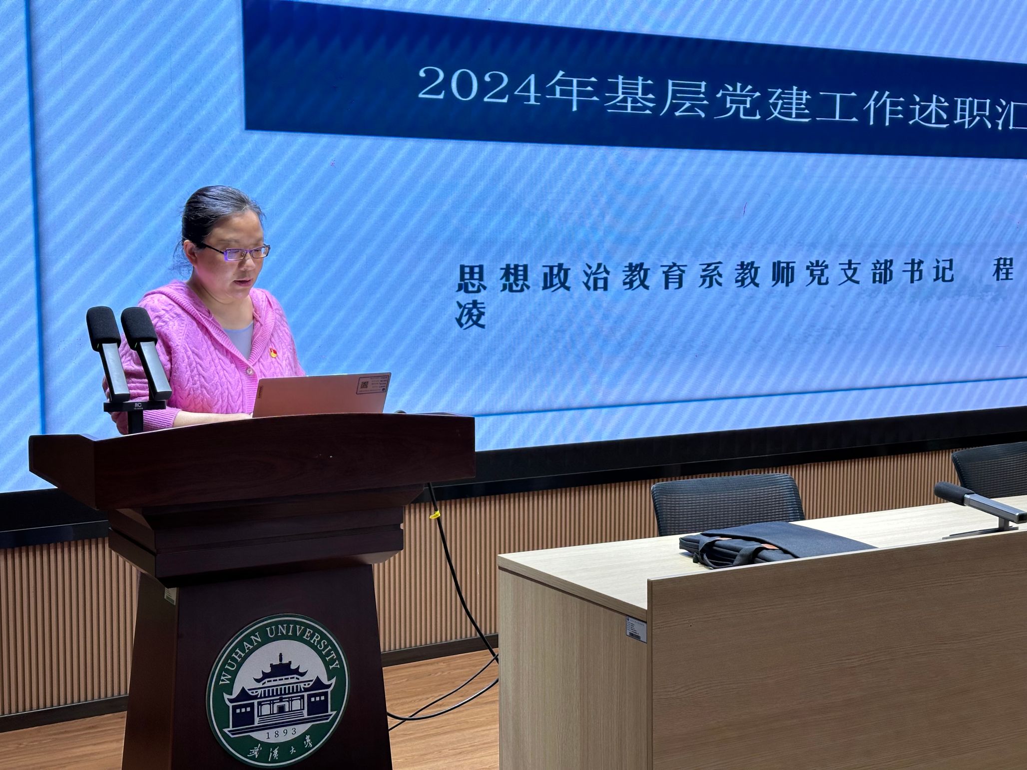 马克思主义基本理论系教师党支部书记龚玉敏从筑根基、强规则、出实招、先践行、谋发展、建正言等六个方面总结了支部一年的工作,并指出支部工作中仍存在如集体知名度不高、支委力量有待加强等问题。中共党史党建系教师党支部书记万军杰分享了支部老中青党员同志积极开展“传帮带”,在教学科研、社会服务、对外交流等方面取得的良好成绩。马克思主义中国化系教师党支部书记简繁围绕“开展支部联学联建”“擦亮‘大思政课’品牌矩阵”“推动大中小学思政课一体化建设”与“推进党的创新理论研究研讨”等四个方面介绍了支部在过去一年的经验做法。思想政治教育系教师党支部书记程凌介绍了在探索建立具有思政系特色的党建工作新方式上取得的突破,以新方式促进党建工作高质量发展。行政党支部书记燕唯佳则表示支部主要在教学管理服务、团学工作、组织人事工作、科研项目管理等方面全心全意为师生服务,发挥基层党支部的战斗堡垒作用。