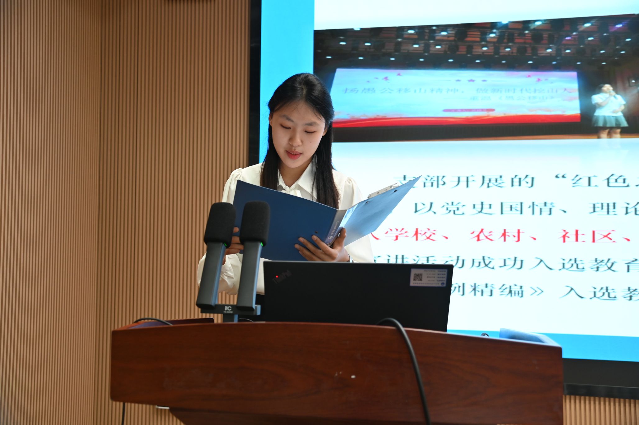 活动在庄严的国歌歌声中拉开帷幕。全体党员起立,高唱国歌。激昂的旋律回荡在报告厅内,激发着每一位党员的爱国热情。