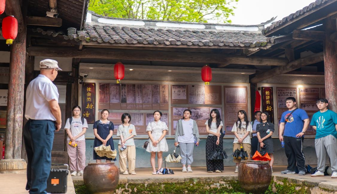 长汀是中央苏区的经济文化中心,被誉为“红色小上海”。21日下午,研学团队抵达“红军长征第一村”——长汀中复村。在这里,师生们认真聆听了松毛岭阻击战的悲壮历史,了解了红九军团为中央红军战略转移所作出的不可磨灭的贡献。在红军桥上,红军烈士后代指着木栏杆上的刻痕说:“当年红军征兵就在这里,身高超过‘人'字线才能当红军。这就是‘生命等高线’。”在场师生无不动容和深受教育。