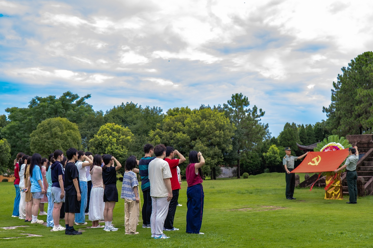 循着中央红军长征的足迹,23日研学团队来到共和国摇篮——瑞金。上午师生前往叶坪革命旧址,聆听了微党课《八子参军》。当授课教师哽咽着念出“儿啊,爹等你回来”时,全场肃立默哀。师生们还参观了一苏大会场,并在红军广场敬献花篮,党员重温了入党誓词。