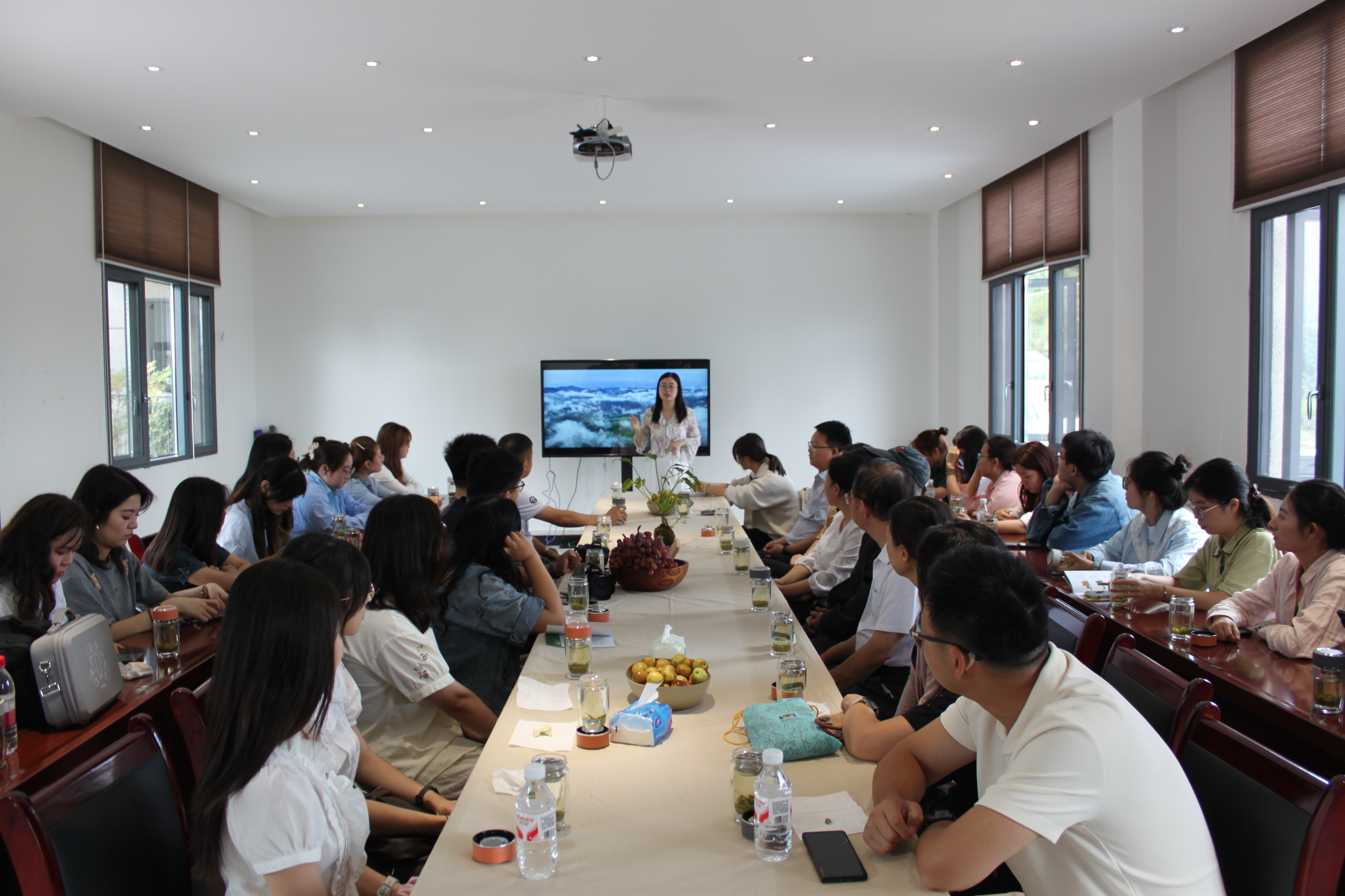 10月12日,团队先后前往利川红会客厅和利川市委党校参观学习。在利川红会客厅文化展馆,讲解员详细介绍了利川红从“地方名茶”到“国家地理标志产品”的品牌升级历程,通过老茶商档案、非遗制茶技艺影像等资料,展现利川红背后的地域文化与红色基因。接着,企业培训部负责人马君向师生们做主题为《品牌赋能与产业发展——利川红“三茶融合”发展路径探索》的分享。交流座谈中,团队成员围绕“三茶融合与乡村振兴的理论衔接”与企业代表深入探讨。星斗山茶企业的实践案例,为学院“大思政课”提供了“理论+产业”的鲜活素材,可进一步合作开发教学案例,帮助学生理解品牌赋能与产业振兴的内在逻辑。