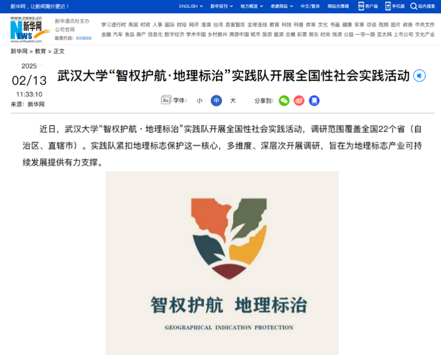 项目研究形成了高质量的成果。相关论文受邀在第18届中国政治经济学年会等4个全国性学术会议上进行报告,项目团队的调研报告和政策建议被湖北省知识产权局、河北省市场监督管理局等23个政府部门采纳应用,团队开展的“智权护航·地理标治”全国性社会实践活动获新华网等主流媒体报道,全网浏览量超百万,项目研究成果产生了广泛的社会影响。