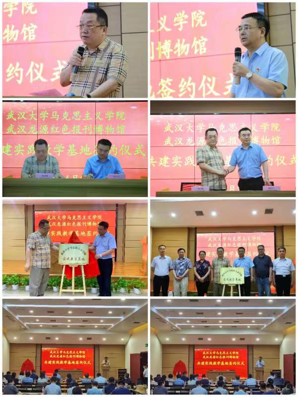 与武汉龙源红色报刊博物馆共建实践教学基地合作备忘录,并共同为实践教学基地揭牌。