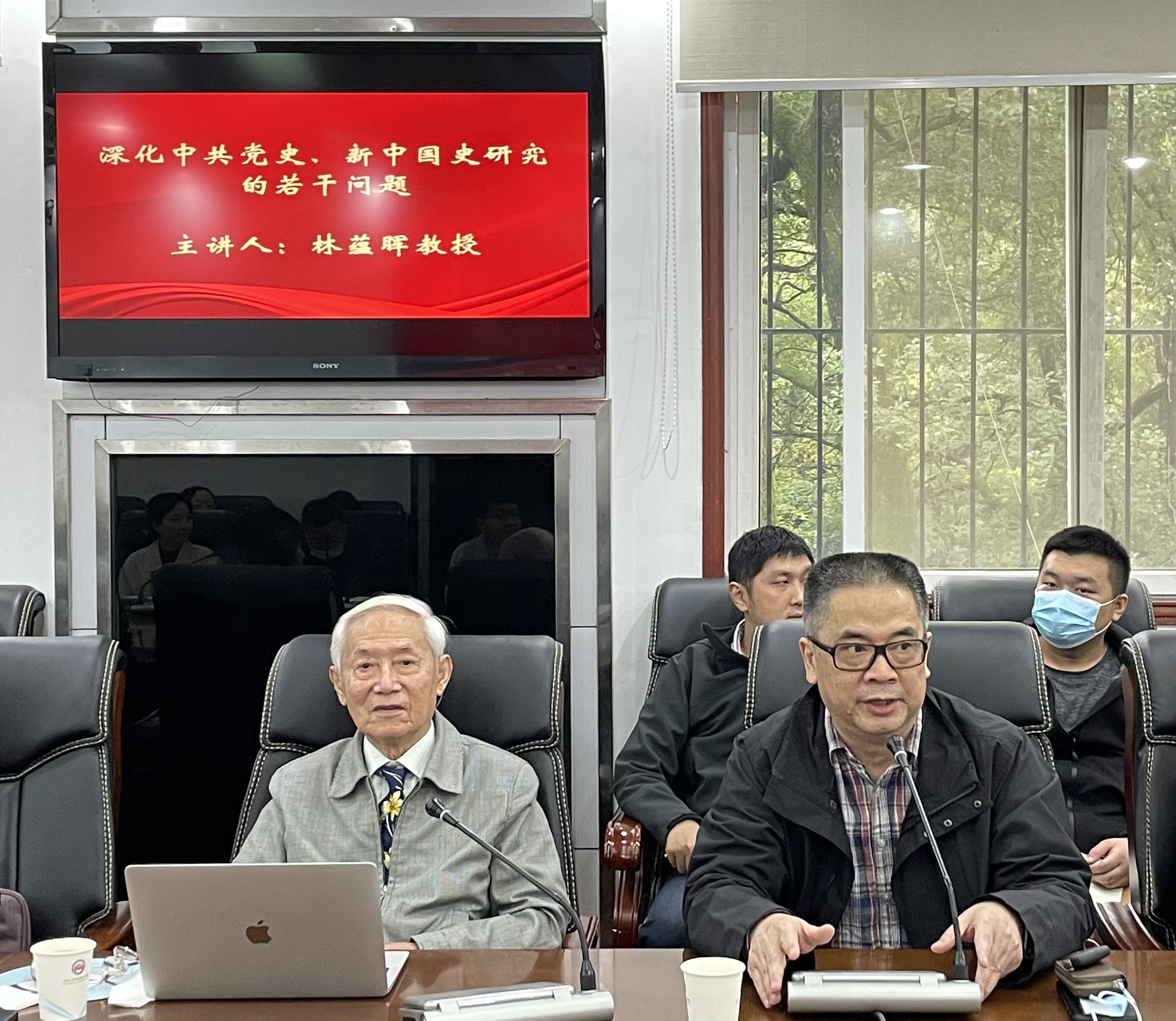 林蕴晖教授围绕中共党史和新中国史研究中的若干重要问题展开自己的讲述。他重申党史国史研究中十分重要的原则——坚持实事求是的原则,强调这是深化认识、拓展视野的基础。同时,他强调党史国史的研究和写作要站在时代高度,指出历史研究必须高度关注现实问题,才能从历史中总结出真正有益于当下的经验教训。林蕴晖教授抓住中国共产党关于“什么是社会主义、怎样建设社会主义”的认识问题,以此为线索溯源五十年代初过渡时期总路线提出的理论背景,结合中国共产党在全面建设社会主义时期的成就和挫折,指出正是中国共产党在认识上的偏差导致了实践探索上的失误,因此十一届三中全会以后,中国共产党重新调整思路,从实际出发,正确提出了社会主义初级阶段的基本路线,才取得了改革开放和社会主义现代化建设新时期的一系列重大成就。林蕴晖教授还从编纂党史文献资料、撰写党史国史著作的亲身经历出发,深刻批判了海外中共党史和新中国史研究、写作中的历史虚无主义现象,特别是针对一些著作中严重歪曲中国共产党领导社会主义革命和建设的历史,以及肆意抹黑党和国家领导人的现象,林蕴晖教授均从史实出发,一一进行了批驳。