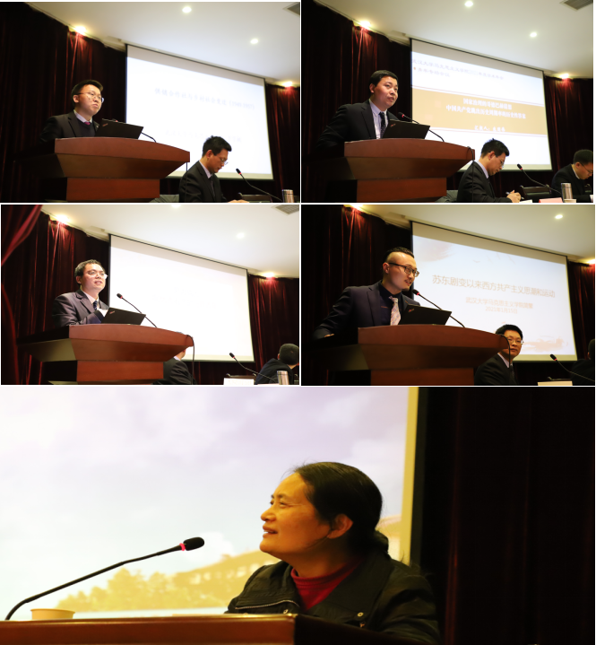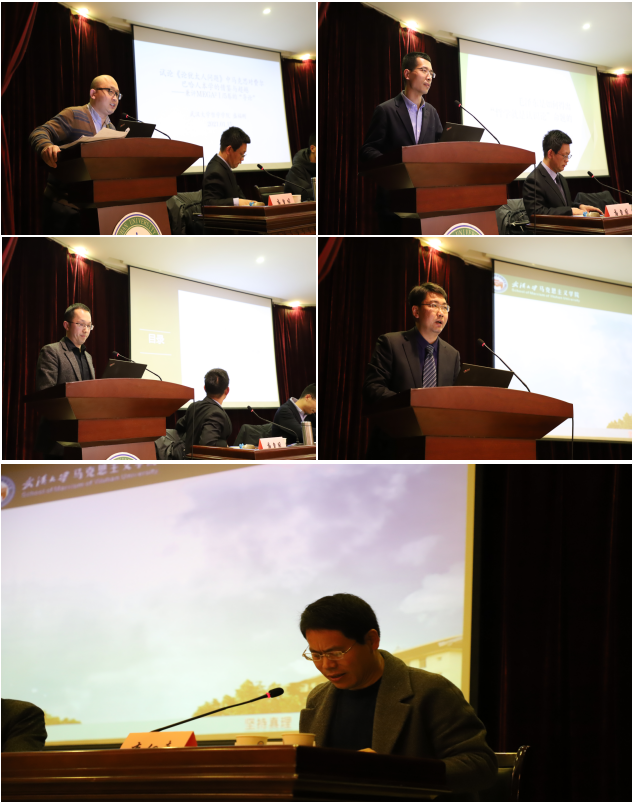 院长沈壮海教授为11位遴选出的“马克思主义理论研究优秀青年学者”颁发证书;第二个阶段为学术交流,由11位优秀青年学者作学术报告并研讨交流。