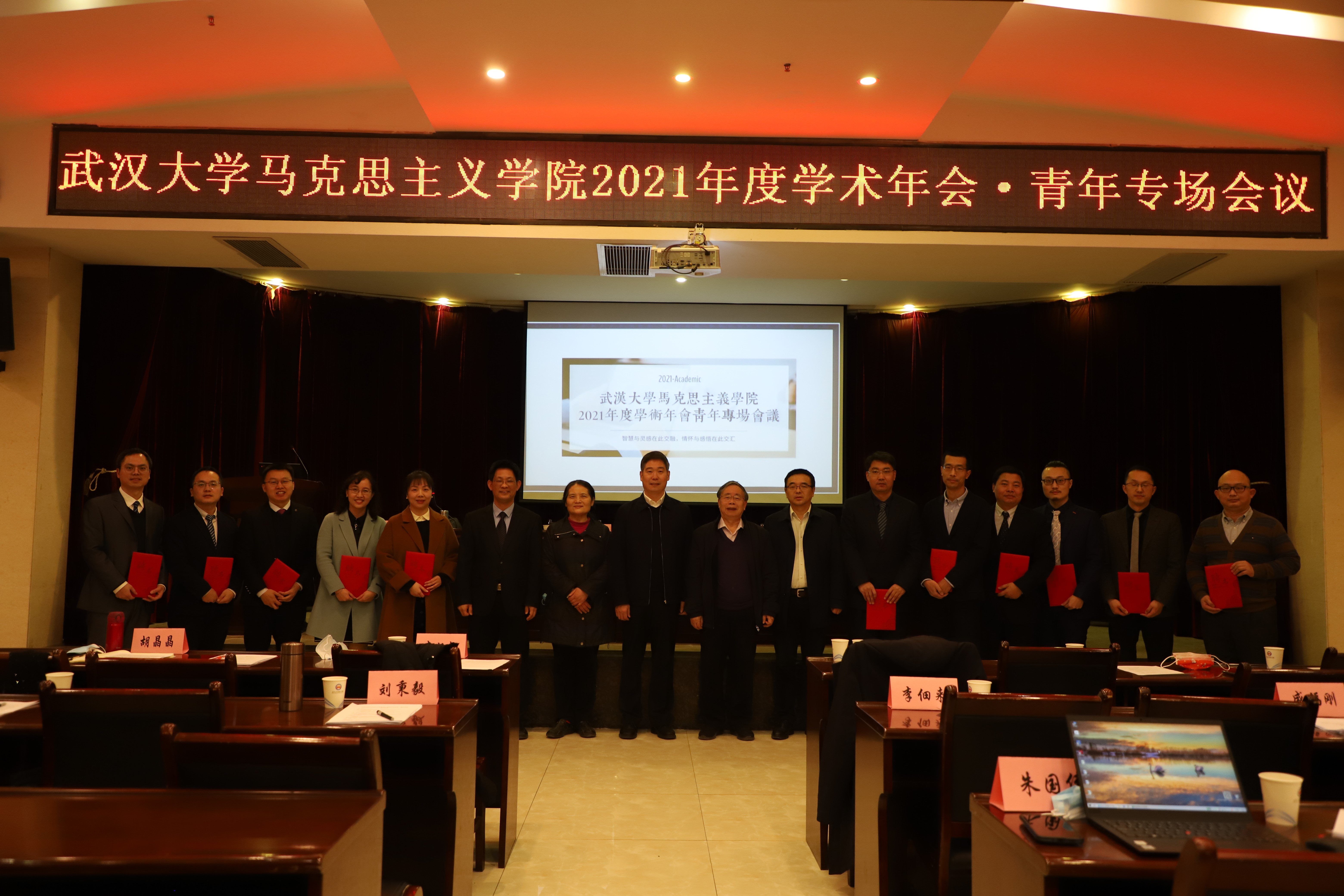 多个学院的李旭超,胡晶晶,陈慧女,盛福刚,周可,刘秉毅,郎廷建,李学桃,朱国伟,刘水静,简繁等11位青年教师提交“马克思主义理论研究优秀青年学者”证书。
