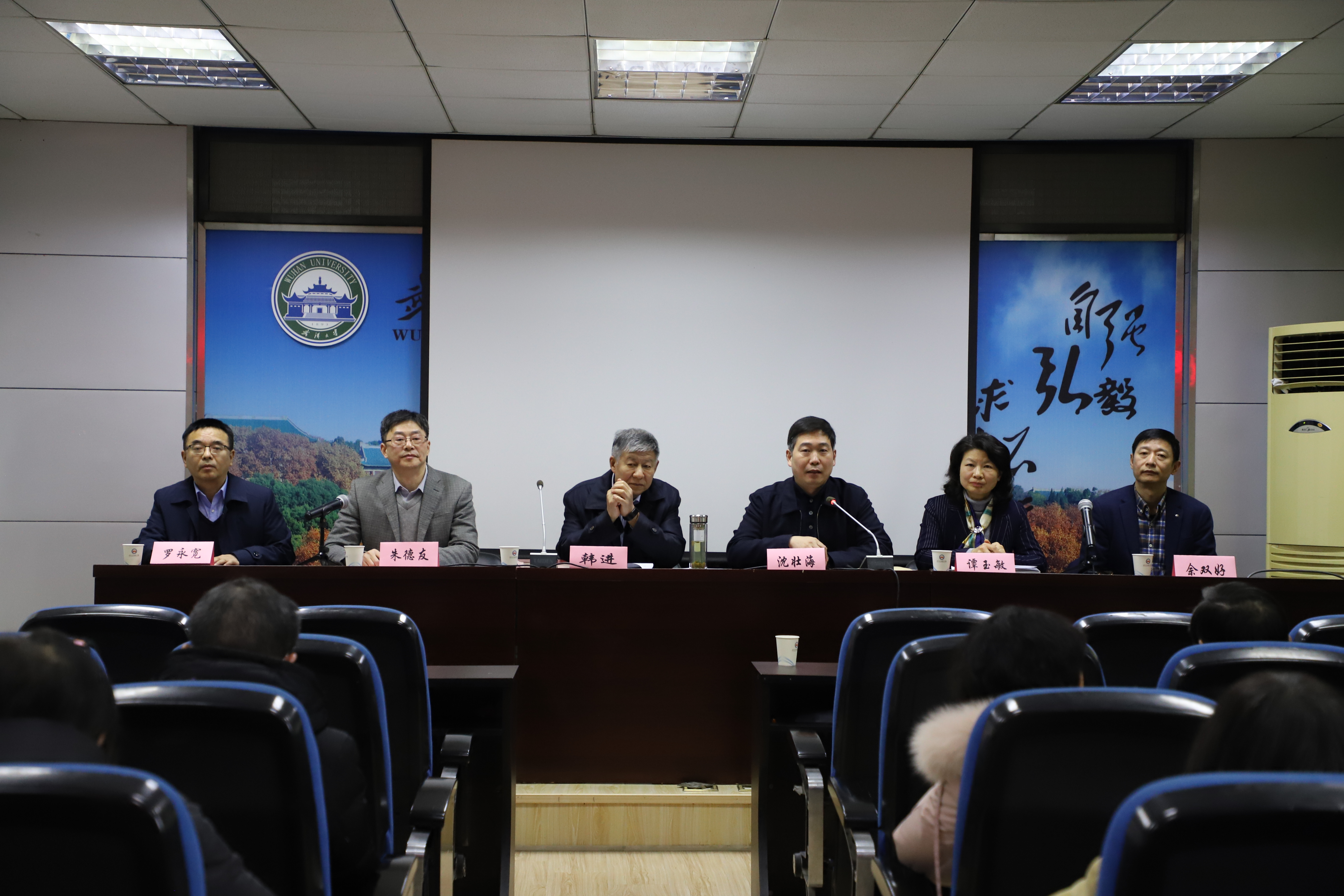 12月17日下午,学院干部宣布大会在M301举行。校党委书记韩进,校党委副书记、院长沈壮海,原任院党委书记谭玉敏,原任院长佘双好,新任院党委书记罗永宽等出席会议,学院全体教职工教师参加会议,会议由校党委组织部部长朱德友主持。