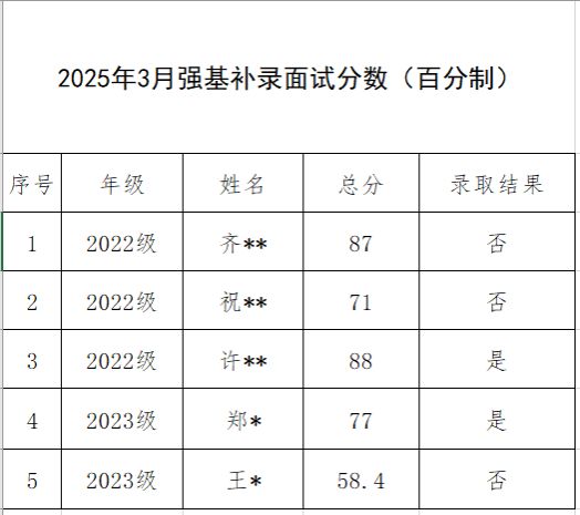 依据《赌大小技巧 强基计划本科阶段动态调整实施办法 修改版第3版》中有关补录的相关规定,赌大小技巧于3月11日完成了补录材料审核及面试工作。经学生自愿报名,工作小组审核材料,面试小组对申请学生进行面试,最终面试成绩及录取结果如下: