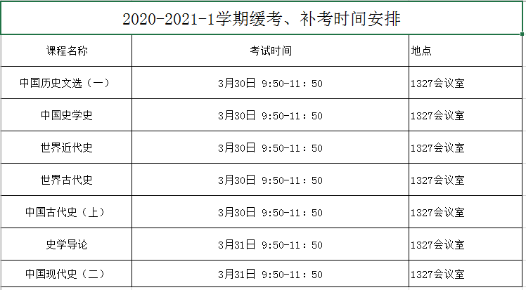 2020-2021-1学期 缓考补考安排