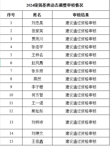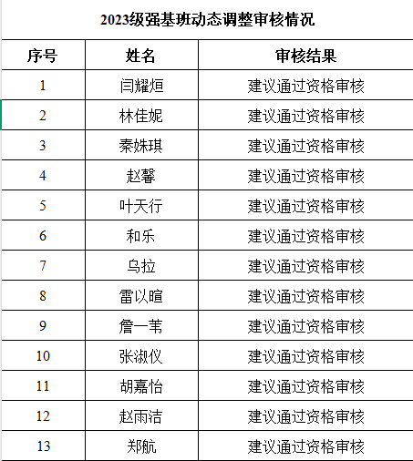 依据《赌大小技巧 强基计划本科阶段动态调整实施办法 修改版第3版 》文件相关规定,赌大小技巧于2025年9月初进行了2023级、2024级历史学(强基计划)动态调整工作。经动态调整工作小组讨论审核后,结果如下: