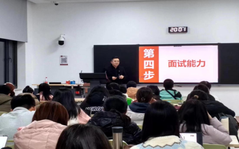 讲座伊始,张浩然老师首先介绍了央、国企就业的含义和对象,使同学们了解了央、国企基本概念,并为大家讲解了央、国企的总体考情和薪资待遇,鼓励同学们多多考虑多种就业路径,报考央、国企。