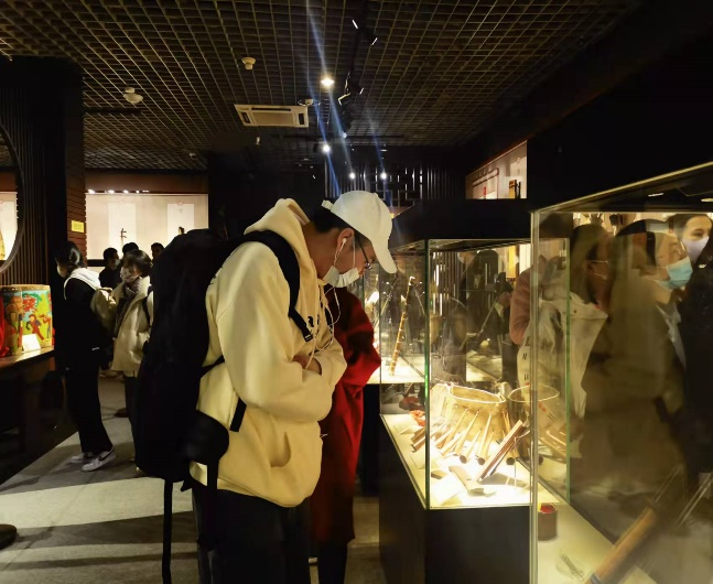 随后,同学们依次观览了大地回声——中国少数民族乐器展、衣无语,绎大千——中华民族袍、衣、裙、裤展以及苍洱契事——馆藏清代滇西契约文书展。在学习参观中,大家不仅了解到各民族灿烂的文化内容,而且更懂得了“美美与共”的真谛。2021级硕博研究生班入党积极分子杨晓黎表示:“此次观赏展览让我尤为震撼,造型各异的水文、唐卡,绚丽多彩的傣族筒裙,别出心裁的赫哲族鱼皮裤,精致小巧的侗族牛腿琴等等。作为文化载体,它们无疑在历史漫漫长河中为民族文化传播和传承起到关键作用。”