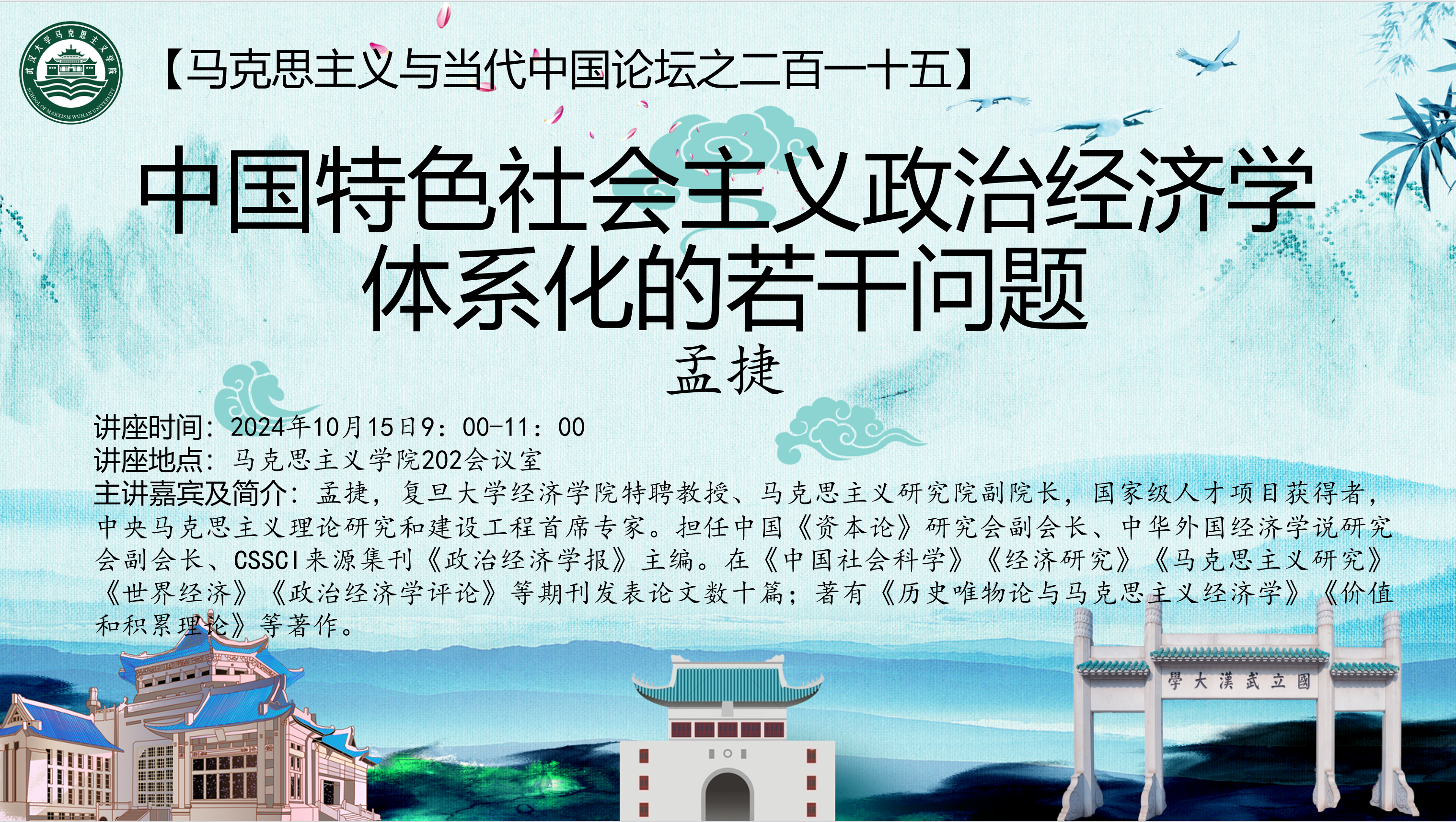 讲座时间:2024年10月15日9:00-11:00