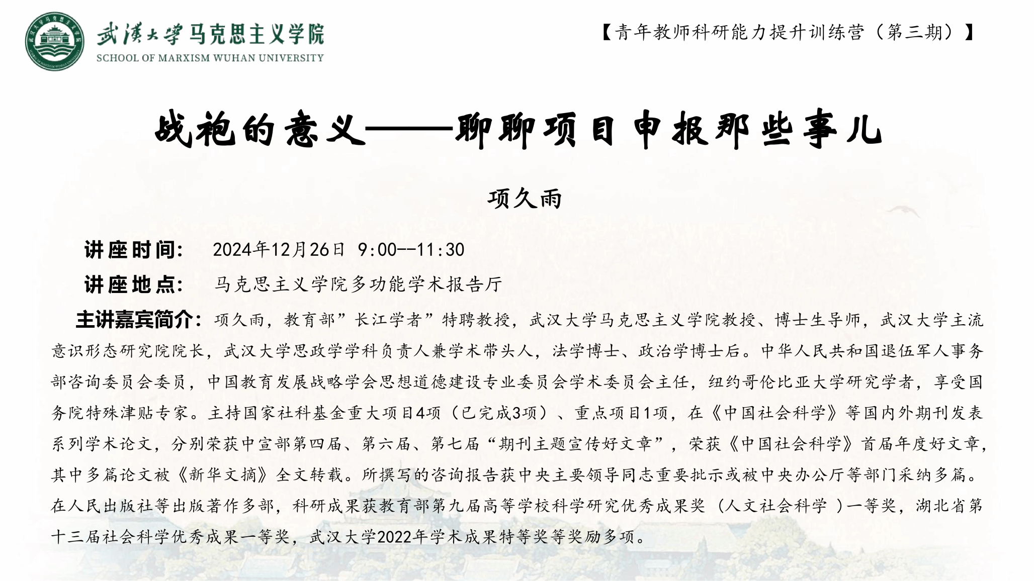 【珞珈中马学术沙龙第四期】吴家庆:习近平新时代中国特色社会主义思想的科学体系解读