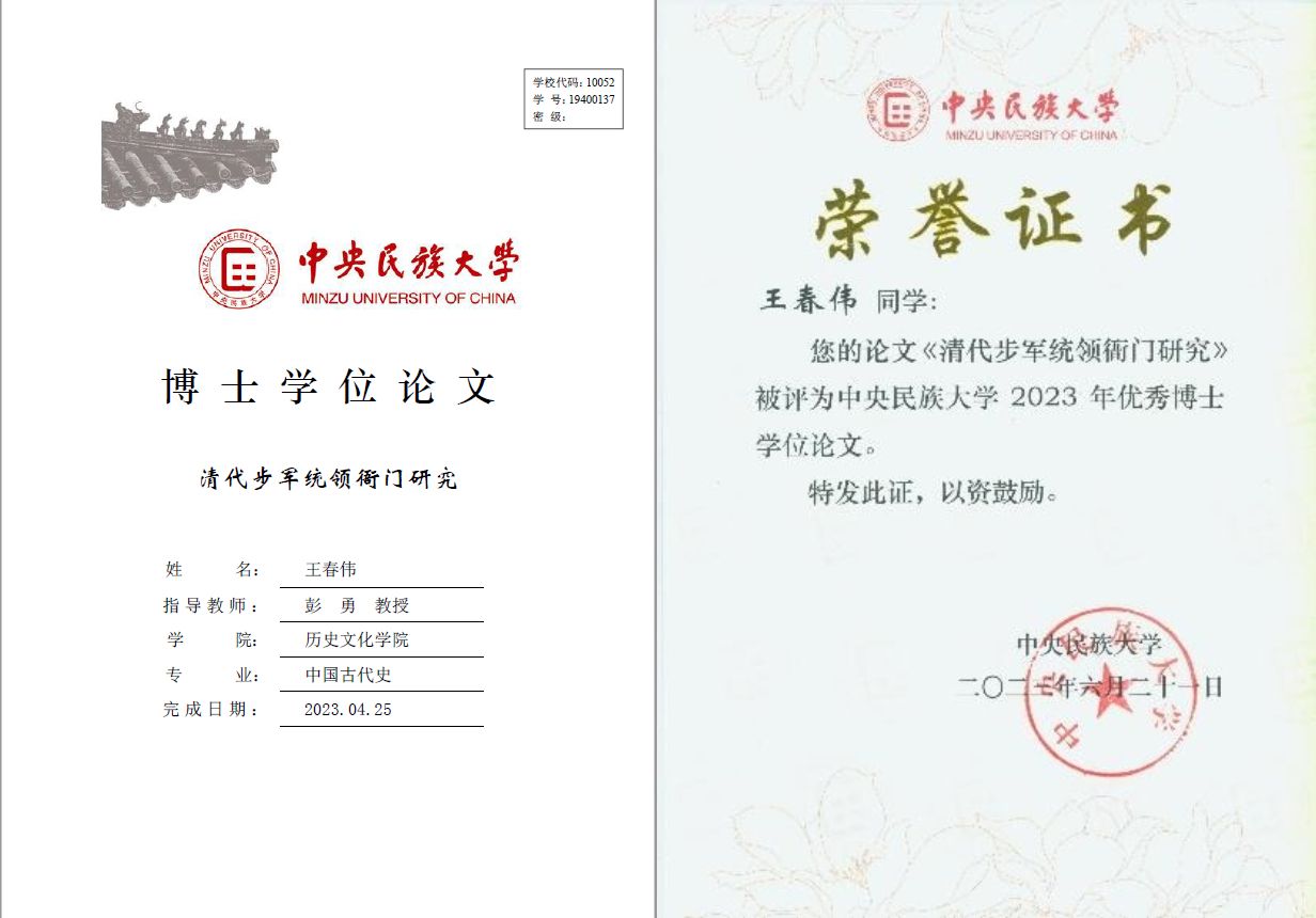 2023年优秀博士学位论文。全文共70余万字,分文上下两编:上编详细梳理了步军统领衙门及所属子机构,如步军营、巡捕营等的制度设计;下编集中考察步军统领衙门在军事、治安、民政、司法方面的职能。步军统领衙门是清代北京多元化治理体系中极为重要的一员,在中央政治生活与北京基层社会治理中,均扮演了重要角色。该论文的出版,不仅有利于揭示清代旗民二元制结构下首都北京基层社会治理的实态,还可进一步呈现中国古代统一多民族国家社会治理的真实面貌,对当下城市治理与民族工作也不无借鉴意义。