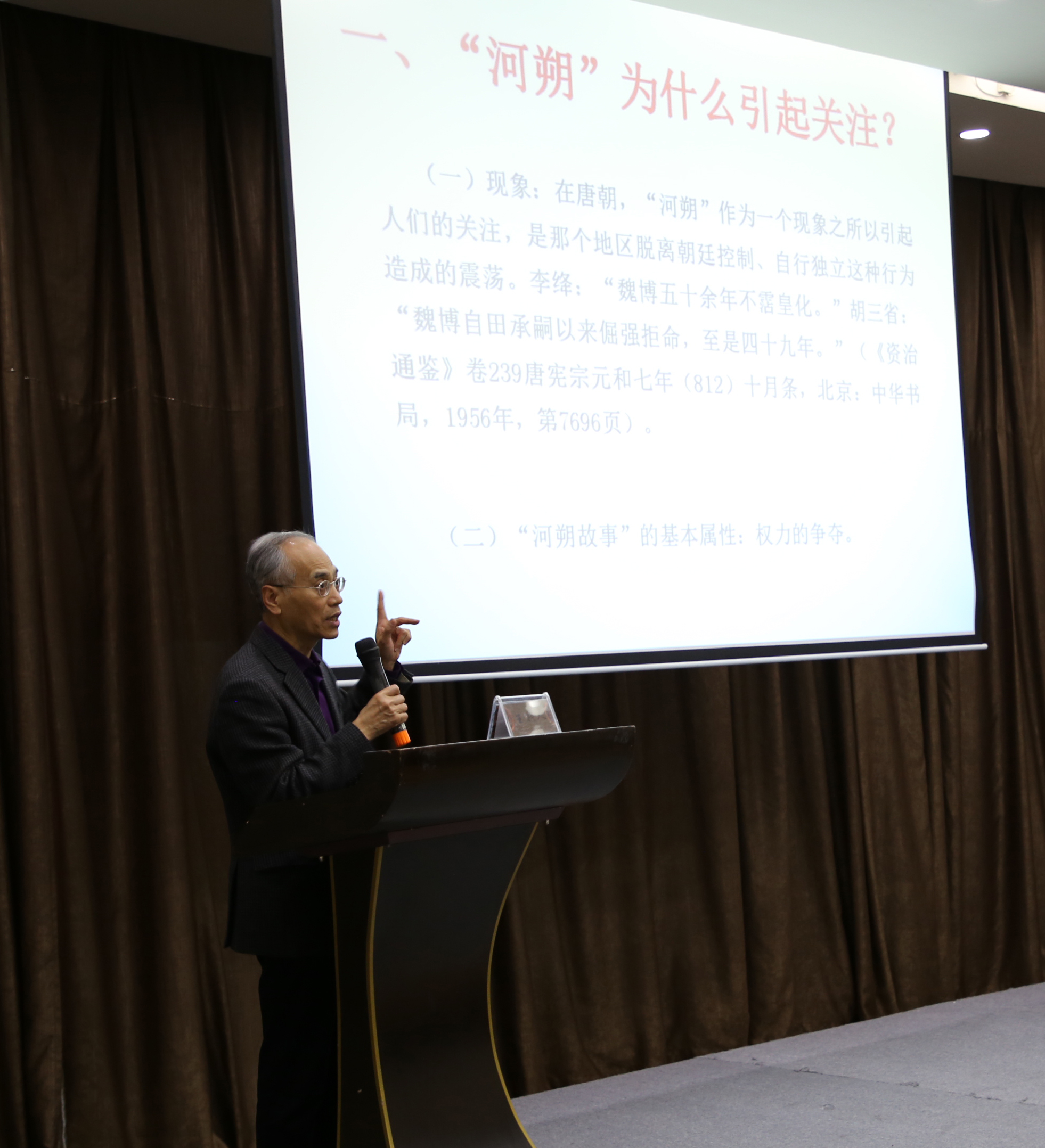 师生作了“唐朝河朔的地缘区位——兼论中国古代中枢权力的西东向转移”的学术报告。他重点分析了河朔在唐朝前后地位的变化及其因缘,于此又对隐藏其后中古时段王朝都城自西向东转移的趋向做了辩证,尤关注迁转表征的历史意涵,为此多做解说和阐释。报告之后,吉林大学赵永春、长春师范大学姜维公两位教授就此评议,高度肯定其学术价值和内涵的历史意义。讲座亦获得听众好评,现场交流延续至会后。