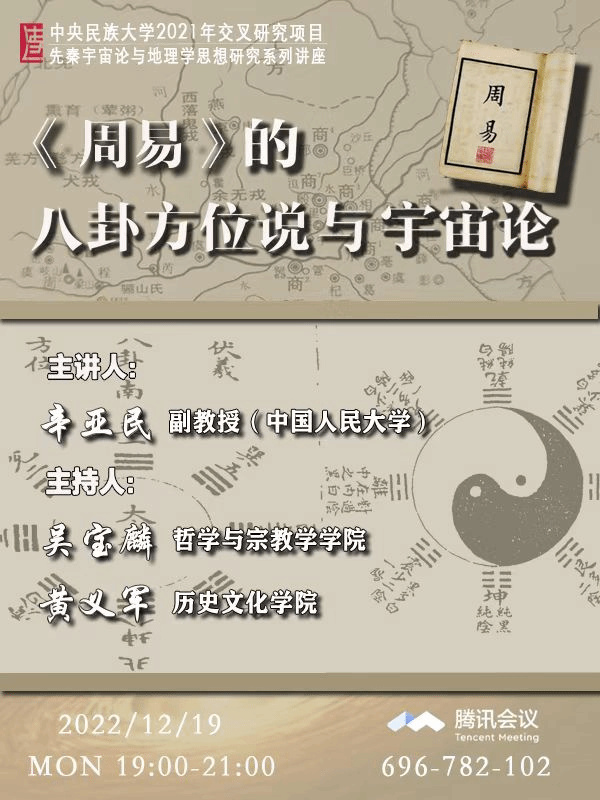 2021交叉研究项目(黄义军、吴宝麟)“先秦宇宙论与地理学思想研究”系列讲座之三:辛亚民《〈周易〉的八卦方位说与宇宙论》】 //www.bilibili.com/video/BV1C44y1o7QC/?share_source=copy_web&vd_source=6a646afec58f08954329232b74875ca8)
