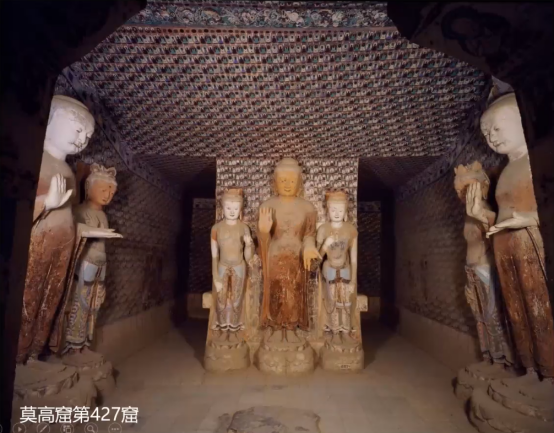 隋代(581-618)的代表窟是第419、420、427窟。这一时期的艺术,反映了对南北、中外的各种艺术进行大胆吸收、融合和革新,使敦煌艺术走上成熟并开创一代新风的道路。