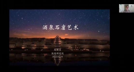 赵晓星老师报告的题目是《酒泉石窟艺术》。报告伊始,赵老师首先对酒泉石窟的整体情况、选址要素和营建工艺进行了介绍。酒泉石窟位于河西走廊西部,具有成规模密集分布、历史延续时间长、内容风格成体系、保存情况较好、名窟较多等特点。酒泉地区的石窟是中国北方石窟河西区洞窟最重要的组成部分,其中以敦煌石窟群最为丰富,包括莫高窟、榆林窟、西千佛洞、东千佛洞、五个庙石窟、一个庙石窟、昌马石窟,及敦煌以东的文殊山石窟,主要分布在疏勒河、榆林河和党河沿岸。
