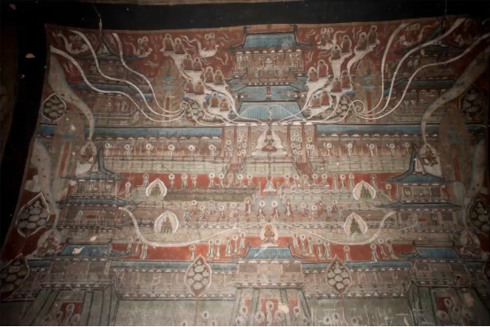 西魏时期(535-556)的代表窟为第285窟和第249窟。这一时期的艺术特色表现出敷色浓丽的西域风格与色调清新的南朝风格谐调并存于同一洞窟。