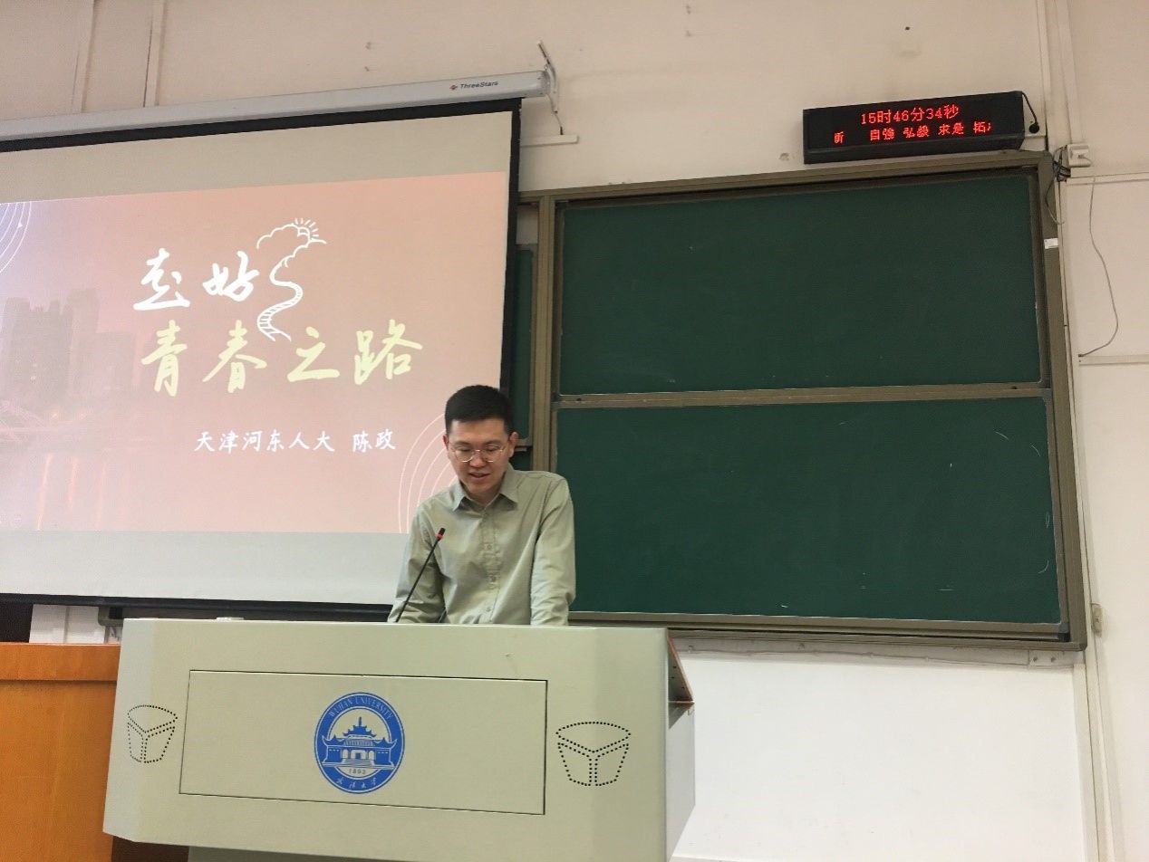 18届外国语言文学学院英汉笔译专业硕士研究生。他结合自己在基层的工作经历,讲解了如何做到理论与实际的结合,做到实事求是。在分享过程中,学生切实感受到了基层工作者的艰辛与不易,也能感受到基层工作者的远大抱负和理想,以及面对困难迎难而上的坚持和信念。每每讲到动情之处,姜文东同志的眼里都泛起了泪光,同学们也为之感动,深受鼓舞!