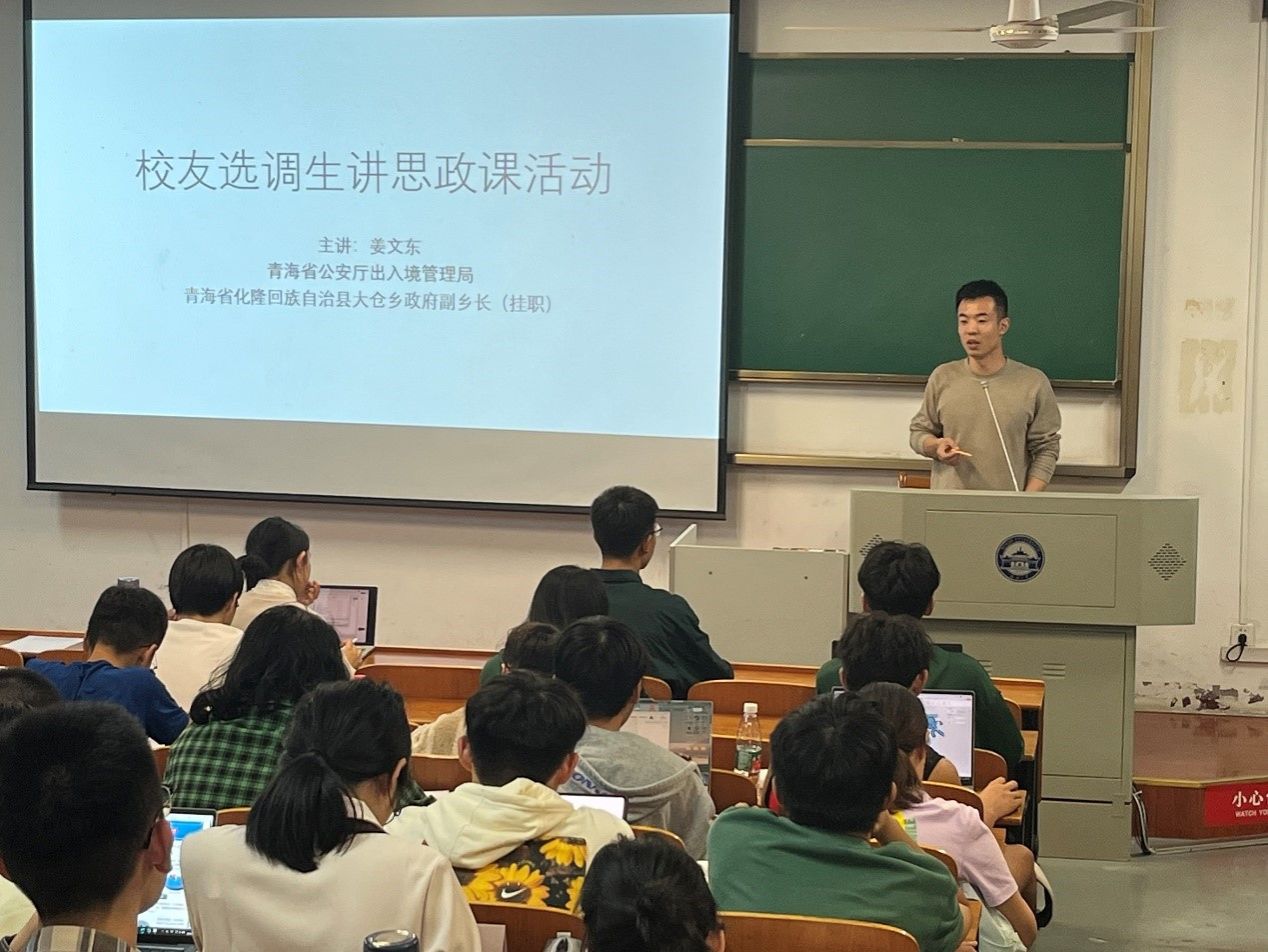 就业中心举办校友选调生进“概论”课堂讲授思政课活动。共有9位来自不同地域、不同岗位的选调生校友代表在10个教学班,开展了以 “‘实事求是’——选调生讲理论联系实际”为主题的授课活动。